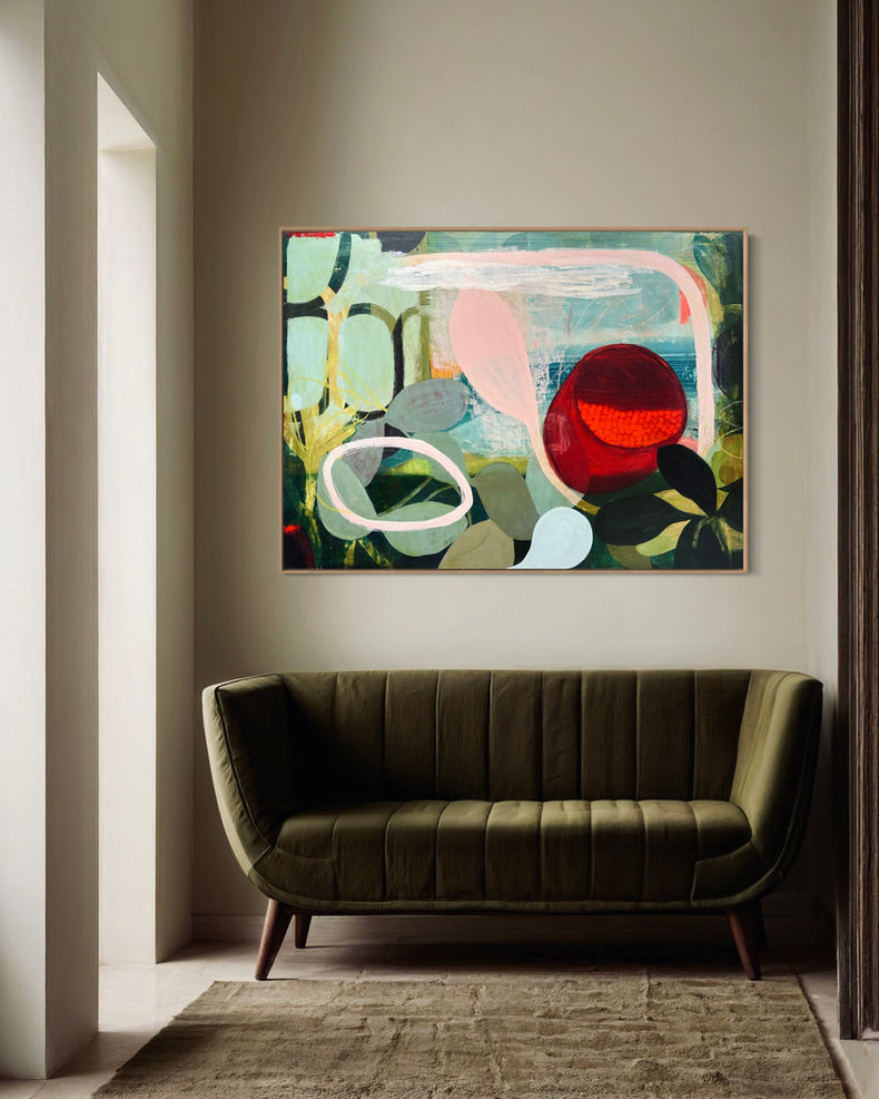 This painting captures the pure joy of being a mum and living through the adventures of your children as they grow up and explore the world. "Vicarious Living" reflects the happiness of sharing in their journeys, like my daughter Phoebe’s recent trip to Greece and Italy with her friends. The lively colours and playful shapes bring to life the excitement of travel and the beautiful moments they create. There’s something truly special about experiencing their joy and wonder from afar, reminding us that part of the magic of motherhood is finding joy in their experiences as they carve out their own paths.